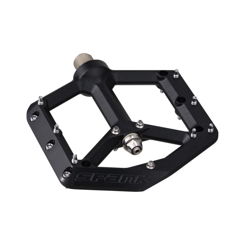 Le corps de pédale plat de 12 mm et les bords latéraux biseautés minimisent le risque de se poser sur un terrain accidenté. À cela s’ajoutent un axe en acier robuste, des joints résistants à l’abrasion et des roulements industriels largement dimensionnés. Le tout donne une pédale qui nécessite peu d’entretien, qui est durable et qui est prête pour toutes les aventures. Pour une utilisation sur DH, Freeride, All-Mountain et E-Bike.