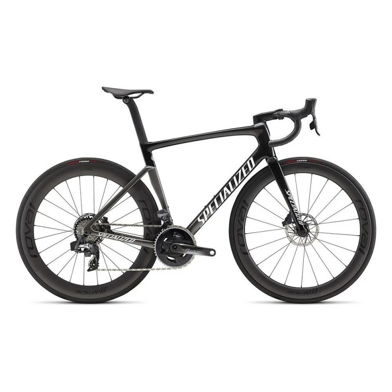 Le tout nouveau Tarmac Pro propose un haut niveau de performance. Un groupe complet SRAM Force eTap AXS 1x propose à la fois un gain en performance aérodynamique, tout en ayant un ratio qui conviendra parfaitement pour la plupart de vos sorties – un plateau de 46 dents avec une cassette 10-36 – et en prime, un capteur de puissance ! Ajoutez à cela les nouvelles roues Roval Rapide CL, avec leur stabilité et leurs performances aérodynamiques exceptionnelles, et le Tarmac Pro est l’arme absolue pour les critériums, pour dominer vos sorties de groupe ou pour vous mener vers votre prochain PR.